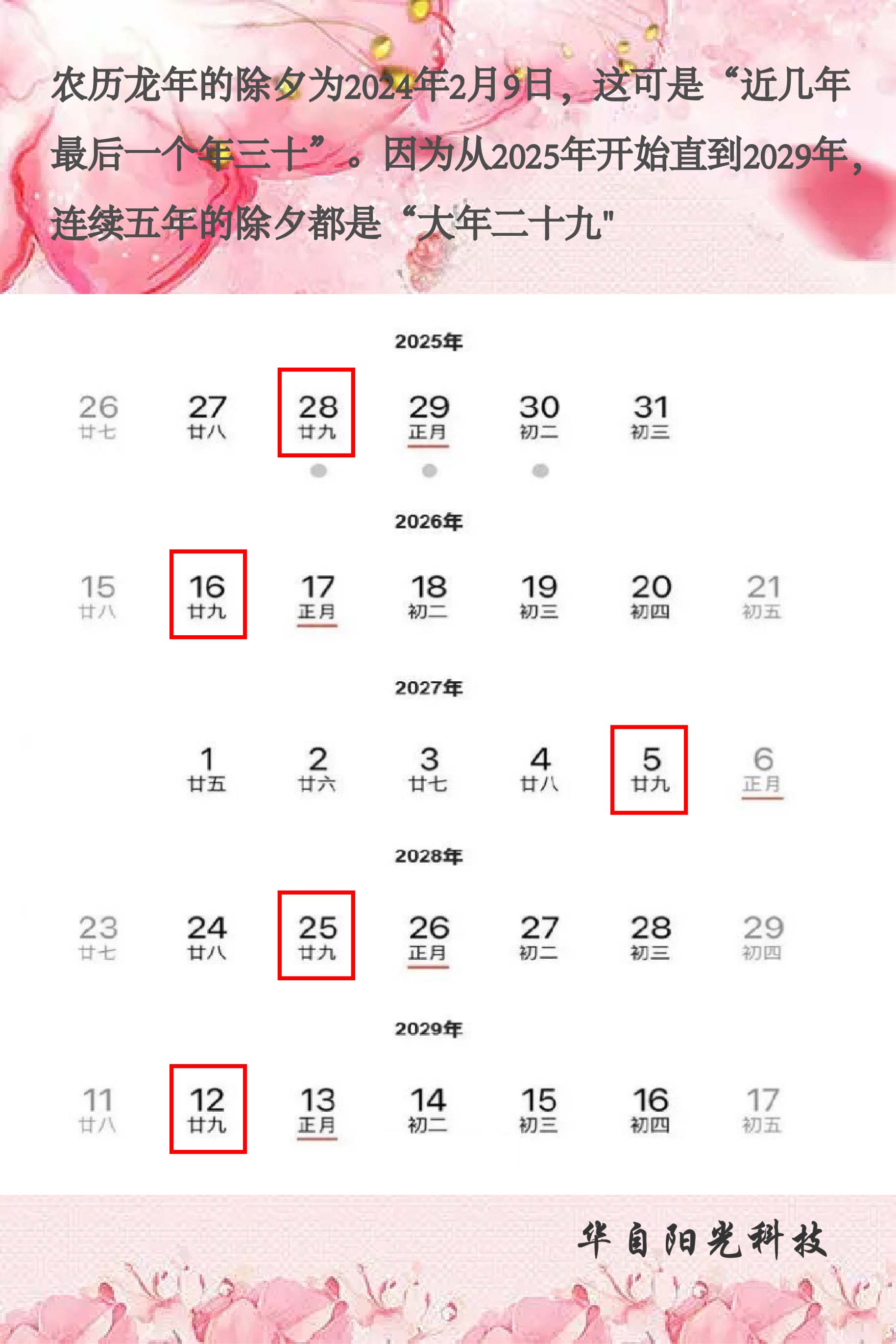 今年除夕是农历12月30日,未来5年除夕都将是12月29日。