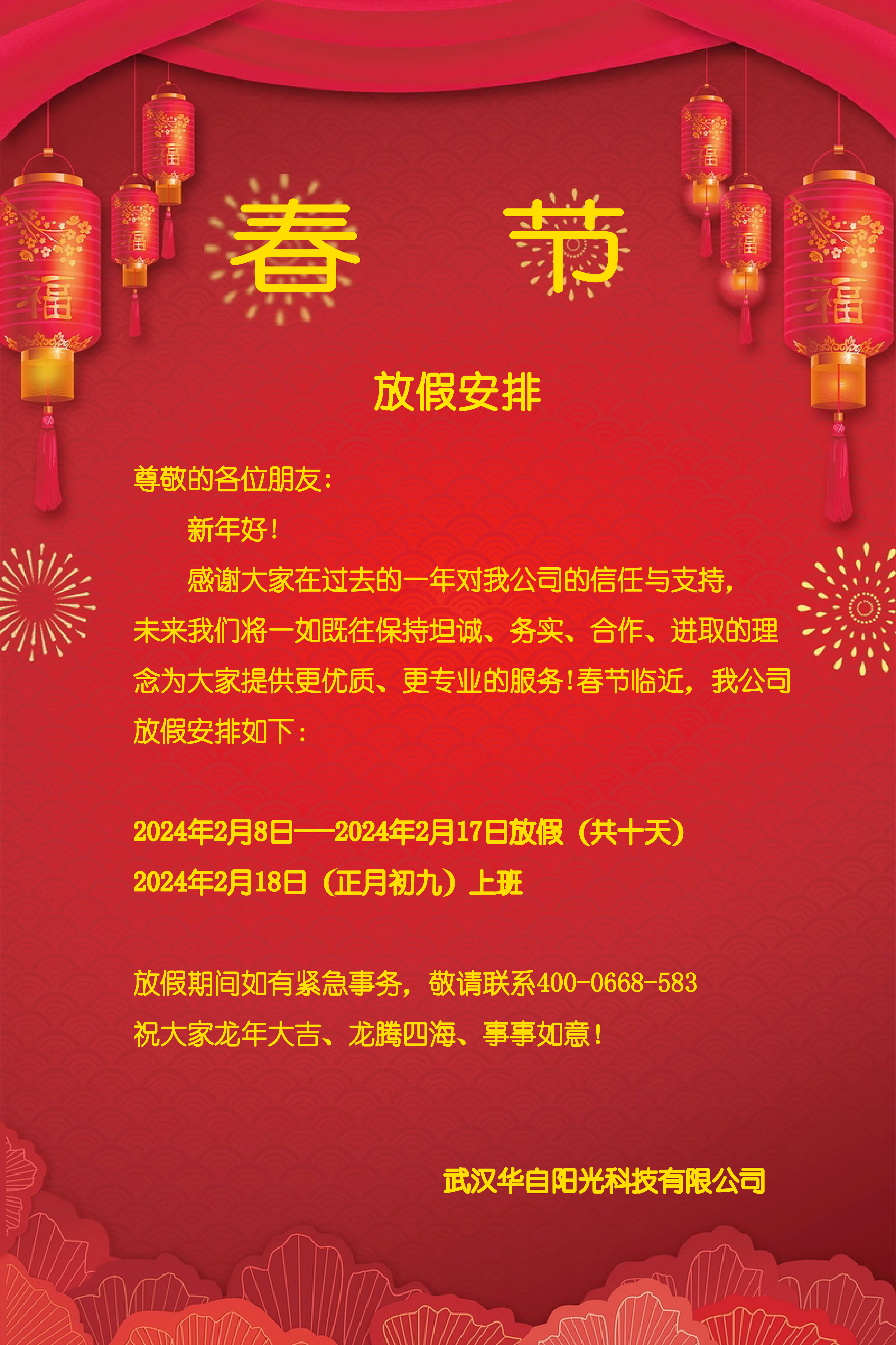 一年一度的传统节日---春节,即将到来,公司春节放假安排如下: